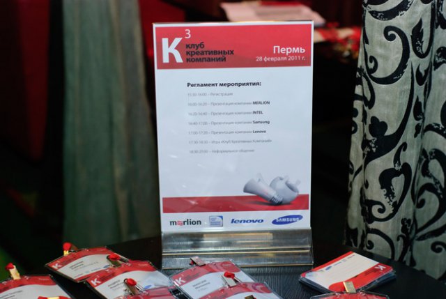 28 февраля 2011 года в Перми прошел первый этап научно-познавательной игры «Клуб Креативных компаний», организатором и учредителем которой выступает ведущий российский ИТ-дистрибьютор компания MERLION. К участию в интеллектуальной игре «Клуб Креативных Компаний» приглашаются компании, которые имеют статус официальных партнёров MERLION, из различных регионов России. Интеллектуальная игра «Клуб Креативных Компаний» состоит из нескольких региональных этапов, на каждом этапе игра проходит под флагом крупнейших производителей компьютерной техники. В течение года игры «Клуба Креативных Компаний» пройдут в Уфе, Самаре, Воронеже, Ставрополе, Челябинске и Чите. Гранд-финал мероприятия состоится в конце года в Москве, и команда-победитель Гранд-финала будет признана самой интеллектуальной компьютерной дружиной среди партнёров MERLION и, помимо денежного приза, получит Дипломы академиков «Клуба Креативных Компаний», а лучший игрок команды станет обладателем Большого Хрустального Глобуса.