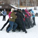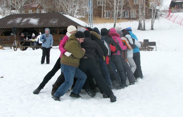 Успешная деловая часть завершилась не менее успешным чемпионатом по зимним видам игр на свежем воздухе. Здесь были и массовая разминка с «дружеским массажем», и совместное прохождение препятствий, «экстремальные» катания наперегонки на санках, эстафеты, бои подушками, «стенка на стенку», перетягивание каната и другие виды традиционных русских зимних забав. И, кроме того, все желающие имели возможность свободно покататься на лыжах, сноубордах, тюбингах, оценив по достоинству качество местных горнолыжных трасс. Новичков, которые впервые стали на горные лыжи, обучали и сопровождали опытные инструкторы.