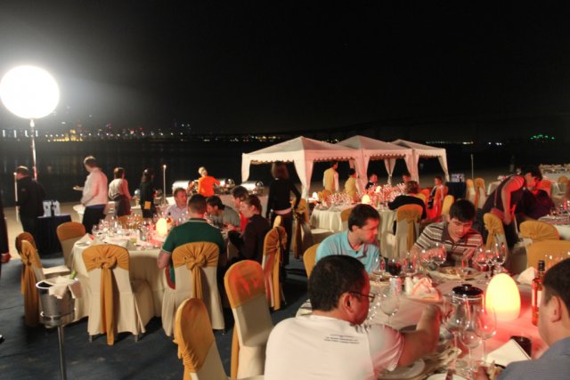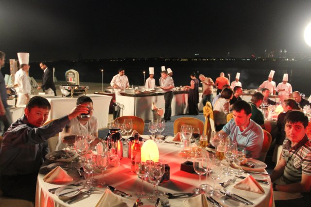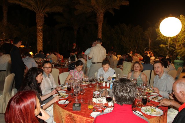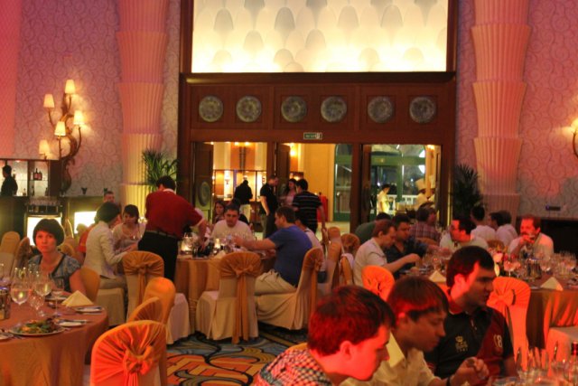 Вечер этого же дня закончился ужином в одном из роскошных залов отеля. Участников развлекал ведущий с зажигательными конкурсами с восточной тематикой.