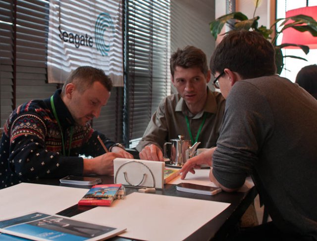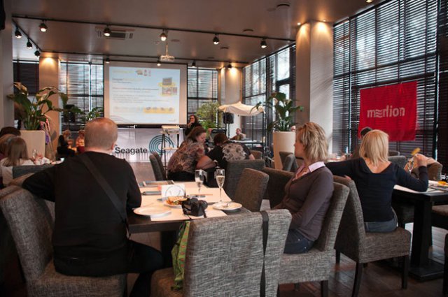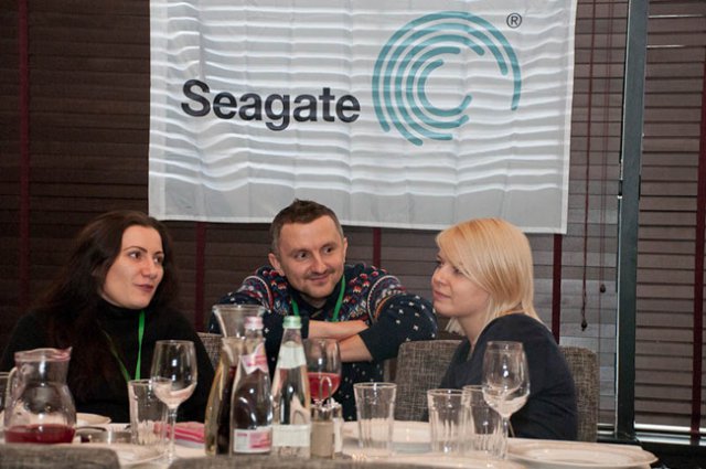 Для начала, чтобы познакомиться поближе, взрослым дали возможность пообщаться с коллегами, узнать историю компании Seagate, услышать о новой продукции этого производителя. Поэтому особым вниманием пользовались почетные гости Академии – представители компании Seagate. Первым выступил Альберт Татулов с обзором внешних жестких дисков и медиаплееров Seagate. Продолжила деловую программу Кристина Савицкая, которая рассказала о новинках и модельном ряде внутренних жестких дисков Seagate. Вопросы маркетинговой поддержки можно было обсудить с Ольгой Козловой, менеджером по маркетингу компании Seagate.