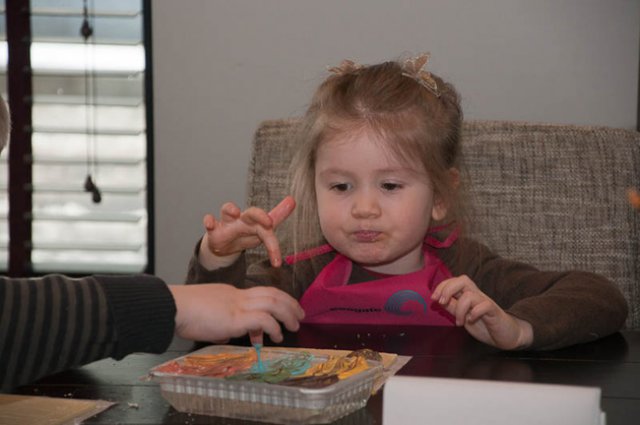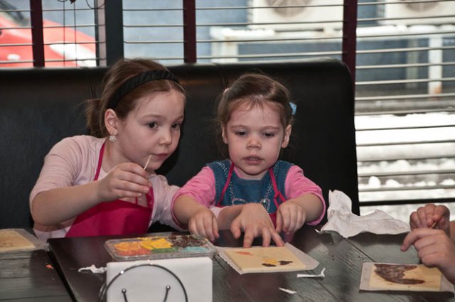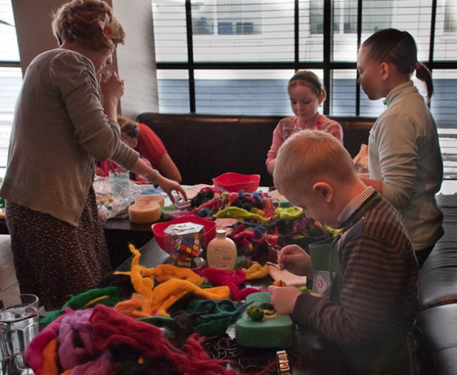 В это же время дети под руководством мастеров занимались подвижными играми, созданием шоколадных картин и поделок из войлока. Сначала для творчества использовали традиционные средства – бумагу, кисти и краски. Но потом у ребят появился шанс попробовать себя в новой роли – стать художниками… по шоколаду! Картина каждого ребенка, написанная специальными красками на плитке белого шоколада, с помощью организаторов мастер-класса была аккуратно упакована. Кто-то из юных авторов прямо тут же гордо демонстрировал свое творчество родителям, другие готовили сюрприз для домашних. Надо отдать должное маленьким художникам: ни один не поддался соблазну попробовать на вкус свой шедевр сразу после приготовления!