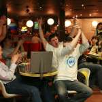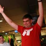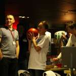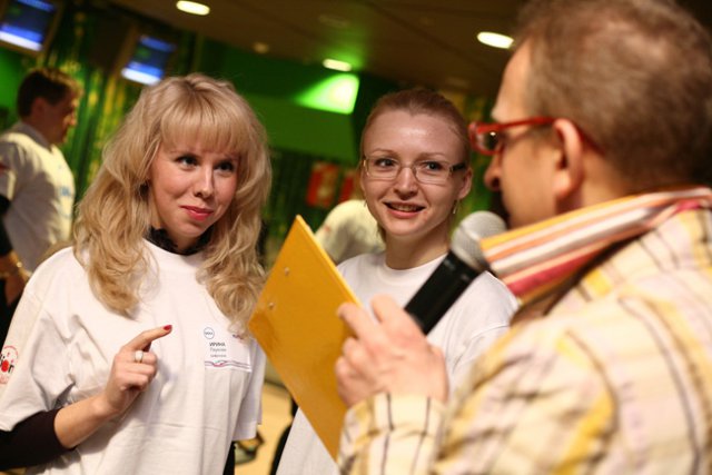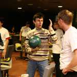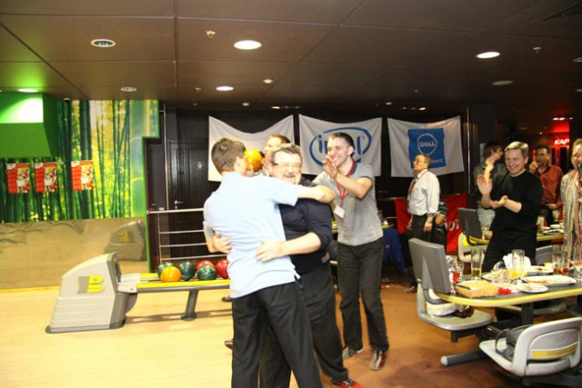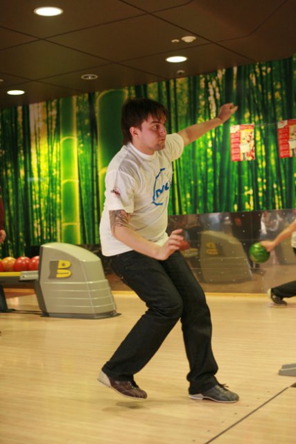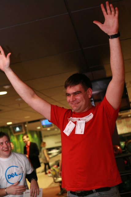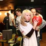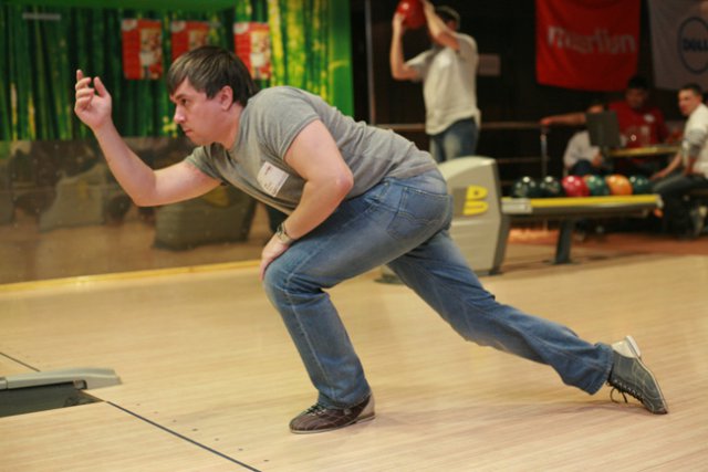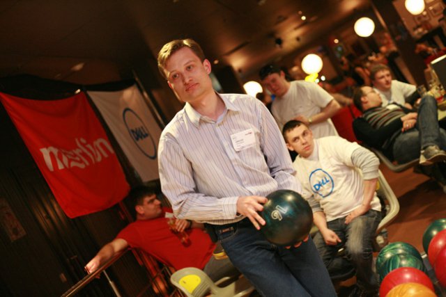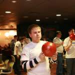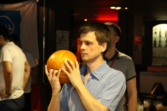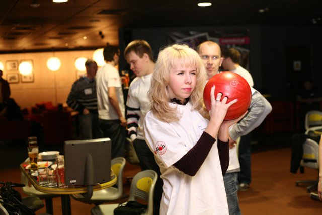 Затем, облачившись в фирменные футболки турнира, команды перешли к боулинг-дорожкам. Однако, в этом году на турнир, вместо заявленных восьми, пришло девять команд, что, безусловно, порадовало организаторов соревнований, и было принято решение: команды, которые зарегистрировались на официальном сайте мероприятия последними, поделили одну дорожку на двоих. И началась настоящая битва!