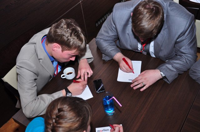 После презентаций участники переместились из конференц-зала в уютный ресторан-атриум отеля, где началось заседание «Клуба Креативных Компаний». Присутствующие разбились на пять команд, которые получили названия: «Юг Самары», «Троечники», «На троих», «Отдел цинизма» и «Буёк». В роли судейской комиссии выступили вендоры и представители компании MERLION. Отметим, что каждая игра «Клуба Креативных компаний» MERLION отличается интересными и нетривиальными заданиями, которые участники игры должны выполнить, используя не только эрудицию, но и творческую смекалку. На этот раз партнерам предстояло составить максимальное количество существительных из слова «Мониторы». Кроме этого, участники игры должны были проявить знание космической и исторической тематик, расшифровать различные аббревиатуры и поупражняться в разгадывании сложных головоломок. В перерывах между раундами игры представители самарского клуба барменов в своей шоу-программе наглядно продемонстрировали искусство приготовления коктейлей. Все шедевры были доступны к дегустации.