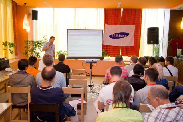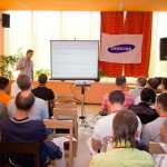 Официальная часть мероприятия была представлена докладом Станислава Ерофеева, менеджера по работе с партнерами Samsung Electronics Rus. Спикер выделил основные достоинства принтеров Samsung: высокую скорость печати и экономию затрат. Именно эти сильные стороны, а также широкий модельный ряд и дисконтные программы наиболее привлекательны как для оптовых, так и для розничных партнеров Samsung.