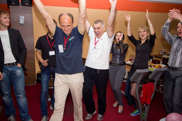 Затем рабочая атмосфера сменилась динамичной игрой. Участники разделились на команды, облачились в фирменные одежды, болельщики зарядились нескончаемым позитивом – и спортивная битва закипела!