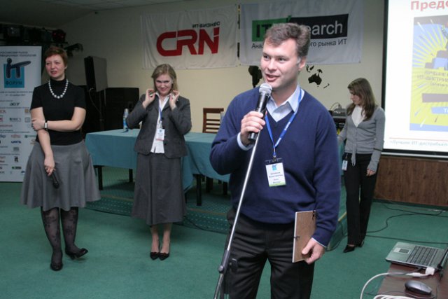 На пленарном заседании доклад на тему «Жизненные циклы сегментов ИТ-отрасли и оптимальные маркетинговые стратегии» сделал Василий Мочар, заместитель директора аналитической компании ITResearch. Ее директор Юрий Бонкарев выступил c докладом «Российский ИТ-рынок. Итоги, тенденции, перспективы» на cекции «Аналитика ИТ-рынка». Там же выступили Константин Зимин, главный редактор Intelligent Enterprise, и Алексей Трофимов, генеральный директор компании «Ритейл Аудит», рассказавшие соответственно о практике использования ИТ на предприятиях и состоянии ИТ-розницы. Содоклад «Проектный бизнес. Взгляд со стороны дистрибьютора» сделал Вадим Лата, коммерческий директор компании RSI.