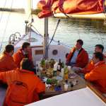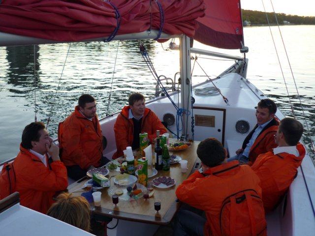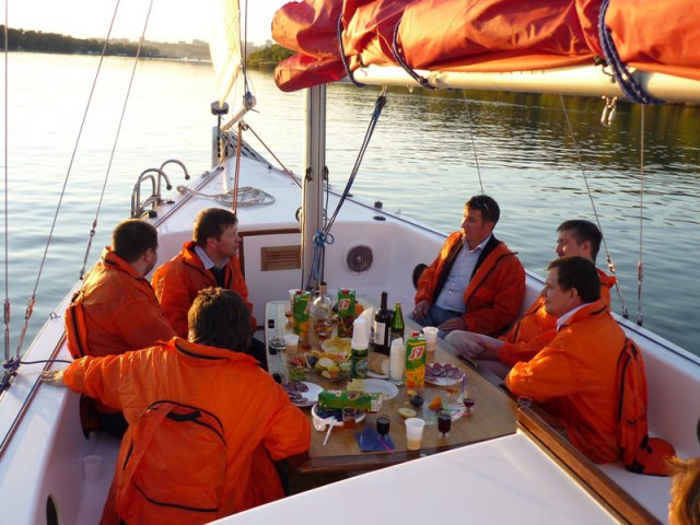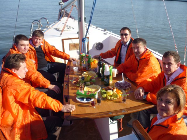 Обсуждать актуальные вопросы в сфере энергосбережения участники «Энерго-ланча» продолжили во время «Круглый стол», который был организован на яхте «Алые паруса». На яхте участники мероприятия стали единой командой в ярких ветровках с логотипом компании iStack. В дружеской атмосфере обсуждались проблемы, с которыми сталкиваются энергетики в повседневной работе и совместно находились решения.