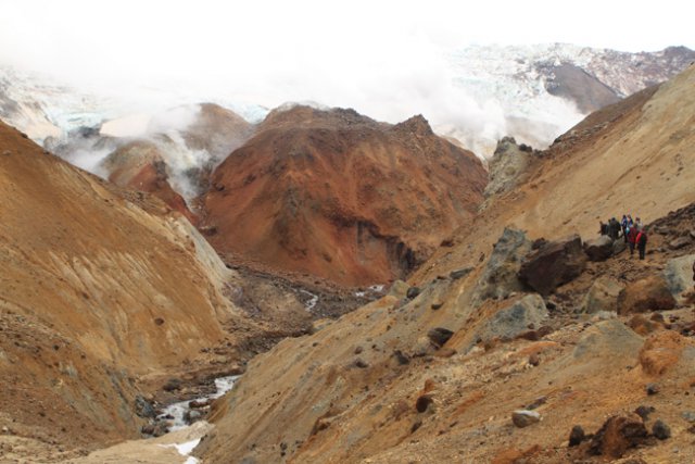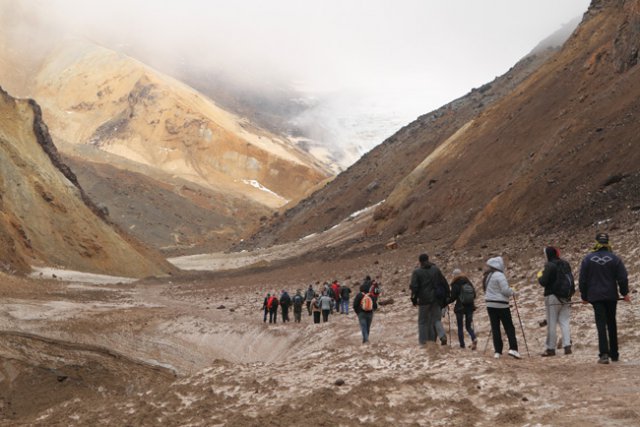 Программа поездки стала яркой и насыщенной и предоставила участникам возможность посетить все достопримечательности края в достаточно короткий срок. Сначала партнеры Landata прибыли в г. Петропавловск-Камчатский, где совершили обзорную экскурсию по городу и морскую прогулку по знаменитой Авачинской бухте. На следующий день участники мероприятия отправились в пеший поход, целью которого было покорение вулкана Мутновский. После непростого восхождения к вершине, путешественникам открылся удивительный вид на кратер вулкана, где повсюду поднимались столбы пара и кипели вулканические грязевые котлы. Прогулявшись вдоль кратера и сделав множество фотографий, путешественники спустились вниз, где у подножья горы для них уже был накрыт обед. На следующий день было запланировано посещение, пожалуй, главной достопримечательности Камчатки – Долины Гейзеров, добраться до которой можно только на вертолете. Небольшое путешествие над тундрой, горными хребтами, реками и вулканами, и участники мероприятия оказались в Долине, наполненной струями клубящегося пара, запахом серы и сверкающим дождем разноцветных брызг.