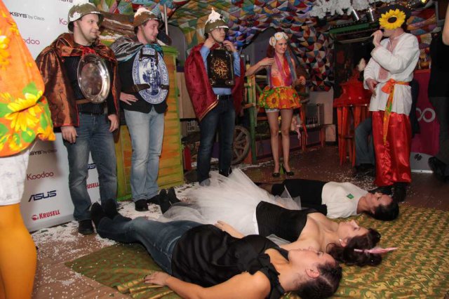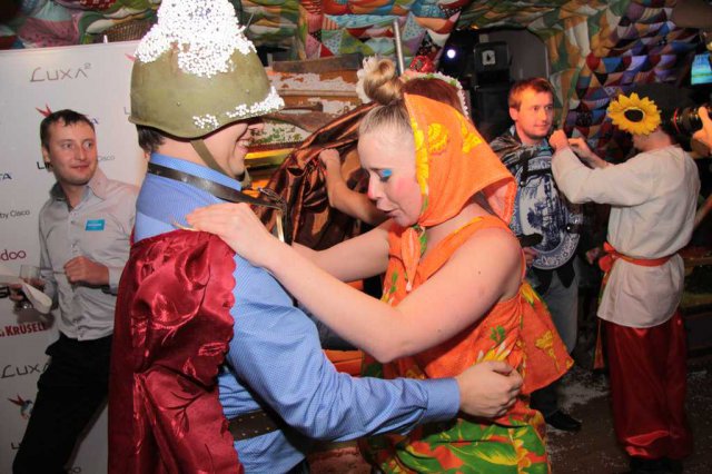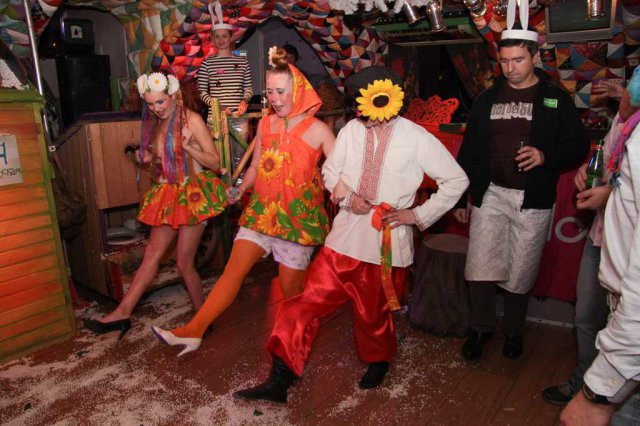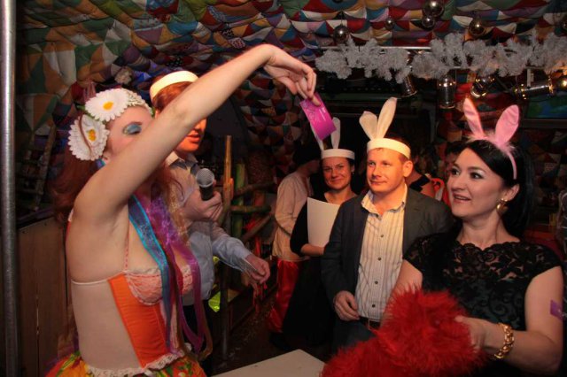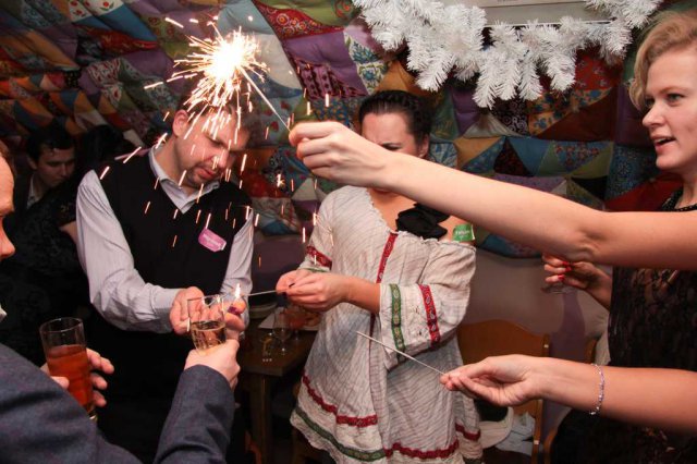 Новогодняя программа была очень насыщенна и включала в себя: обряд очищения, погружение в праздничную атмосферу, конкурс богатырей и выбор Василисы Премудрой. Некоторые участники с удовольствием попарились в настоящей русской бане с вениками, и продолжили встречать Новый Год чистыми и румяными. Ровно в 12 часов бокалы наполнились шампанским, все загадали заветные желания, которые обязательно должны исполниться в наступившем году!