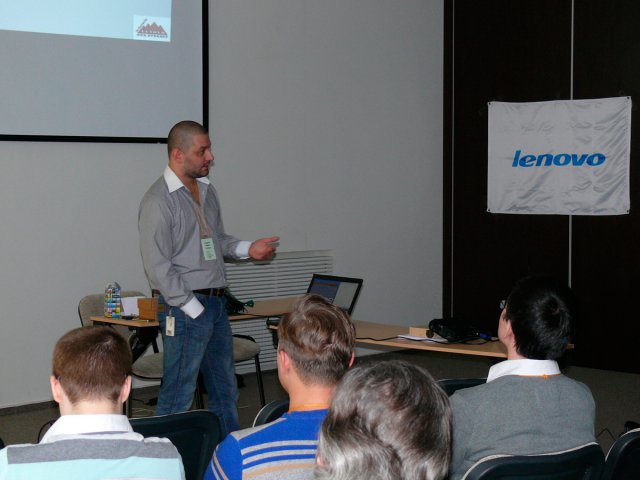 Андрей Бабин, SMB VAR Manager Lenovo, познакомил присутствующих с историей компании, с новейшими разработками и ближайшими планами, отдельная часть доклада была посвящена условиям работы с партнерами.