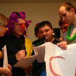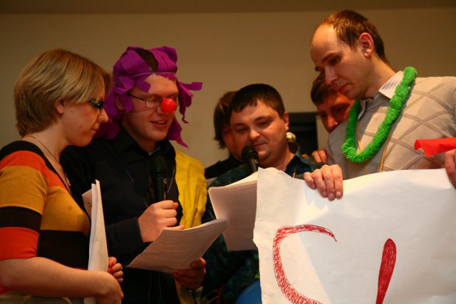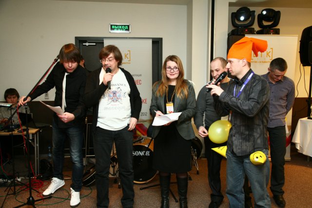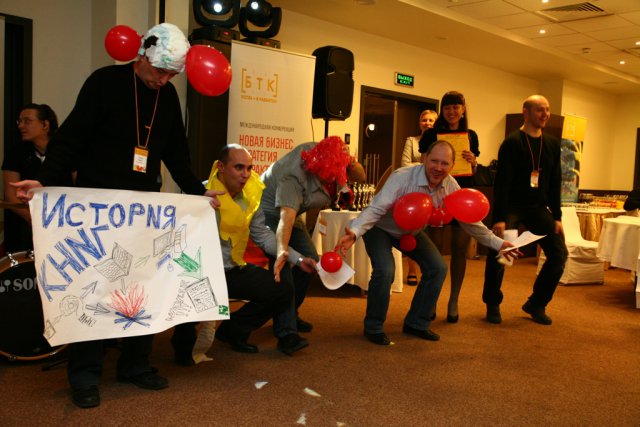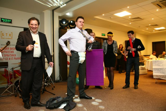 После чего всех собравшихся ожидал сюрприз – интерактивная программа «БТК ТВ». В веселом и увлекательном конкурсе участники стали исполнителями эстрадных номеров в стиле КВН. Победители дружеского конкурса стали обладателями практически настоящих «Оскаров».