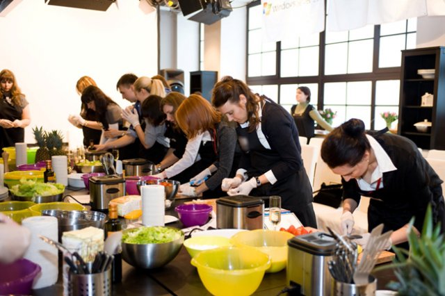 После завершения официальной части прекрасную половину IT-индустрии ждал сюрприз. Не секрет, что нет ничего вкуснее еды, приготовленной с хорошим настроением и съеденной в приятной компании. Организаторы решили предоставить возможность всем приглашенным проверить истинность этого высказывания и попробовать себя в качестве автора кулинарного шедевра.