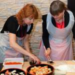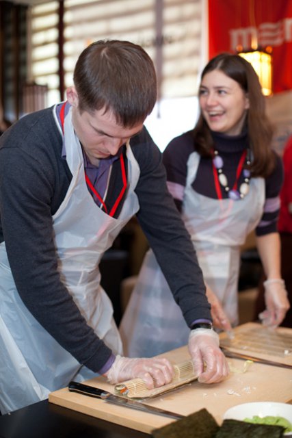 В кулинарном тренинге приняли участие практически все. Вспомнив, что лучшие повара – мужчины, с большим энтузиазмом взялись за приготовление блюд азиатской кухни даже представители сильной половины человечества. После курса кулинарного мастерства у каждого была возможность дегустации получившихся блюд. Гастрономические шедевры в японском стиле, как и положено, получились яркими и колоритными, подтверждая известную мудрость страны восходящего солнца: «японец ест не только ртом, но и глазами».
