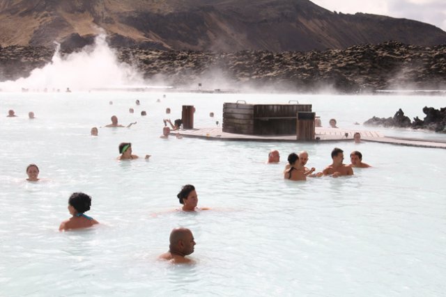 Нельзя побывать в Исландии и не искупаться в знаменитых термальных источниках Голубой Лагуны (Blue Lagoon), где горячие геотермальные воды поднимаются на поверхность в искусственную лагуну в окружении скал, образованных застывшей вулканической лавой… Купание в целебных водах Голубой Лагуны при температуре окружающего воздуха +2С также оставило впечатления из цикла «неизгладимые».