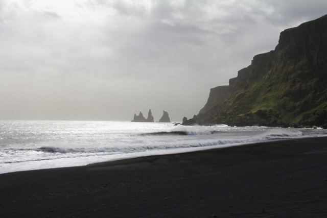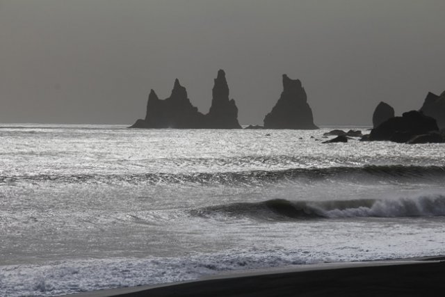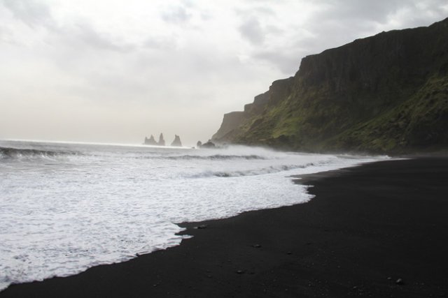 Следующий день принес новые потрясающие эмоции и впечатления. Южное побережье острова, суровый Атлантический океан, омывающий пляжи из черного вулканического песка, базальтовые скалы в виде исполинских пальцев, торчащих из черного вулканического песка.