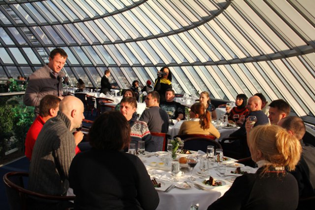«Потрясающие впечатления первого знакомства с Исландией» завершились ужином в «Деревне викингов», где путешественники, погрузившись в суровую атмосферу бытия древних викингов, отведали блюда аутентичной исландской кухни, в том числе мясо акулы, тминовую водку и многие другие местные «деликатесы».