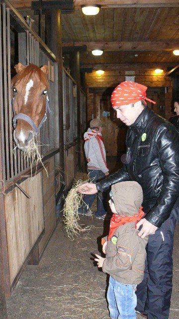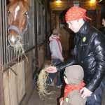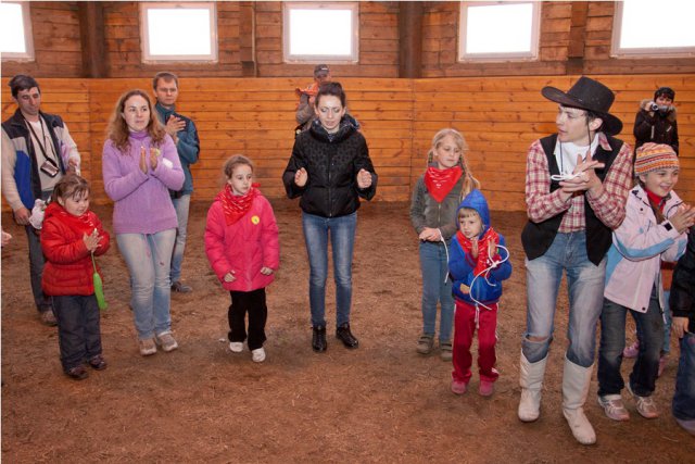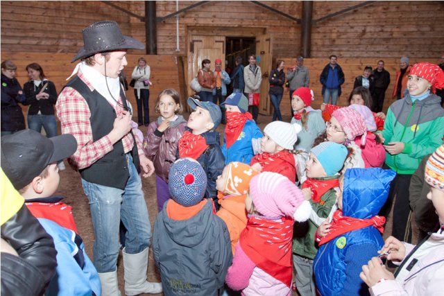 После общения с животными ребята и их родители с удовольствием делились впечатлениями за чашкой горячего чая с пирогами и сладостями. Гостей усадьбы ждал самый настоящий сюрприз: из далёкой Мексики прискакал на праздник Ковбой с целым сундуком подарков. Но для того, чтобы его открыть, нужен был секретный код. В различных конкурсах на смекалку, скорость и ловкость дети разгадывали части кода. А когда Ковбой научил их вязать самое настоящее лассо, был завоеван последний код, и вместе с родителями ребятишки отгадали все секретные слова. Подарки из открытого сундука обрадовали детей, каждый из них стал владельцем лошадки – пусть пока и игрушечной.
