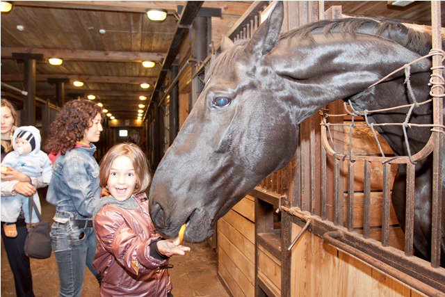 На свежем воздухе, среди зелёных полей и просторных конюшен дети и их родители окунулись в мир природной гармонии и красоты, забыв о времени и городских заботах. В ходе маленького путешествия участники праздника с удовольствием знакомились с лошадьми, кормили их с ладошки яблоками и внимательно слушали обзорную экскурсию.