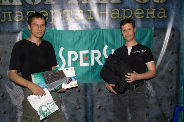 Борьба была ожесточённой, и первыми из неё выбыли две представительницы прекрасной половины человечества. К сожалению, в реальном бою скидок на возраст и пол нет. Через пятнадцать минут напряжённых баталий начали выбывать и мужчины. В ходе почти получасового боя, в лабиринте осталась пара самых сильных бойцов. В честном поединке победу одержал – Даниил Леоненко. А самым результативным в ходе всех игр был признан Леонид Алексеев. Победителей наградили стильными подарками «Лаборатории Касперского», а также на память об игре всем участникам вручили футболки.