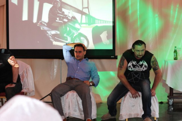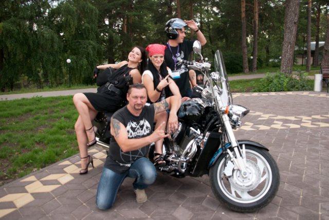 Неофициальная часть конференции проходила на свежем воздухе и была посвящена байкерскам и их образу жизни. Чтобы гости прониклись тематикой вечера, всем подарили байкерские футболки и стилизованные пивные кружки с символикой мероприятия.