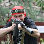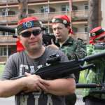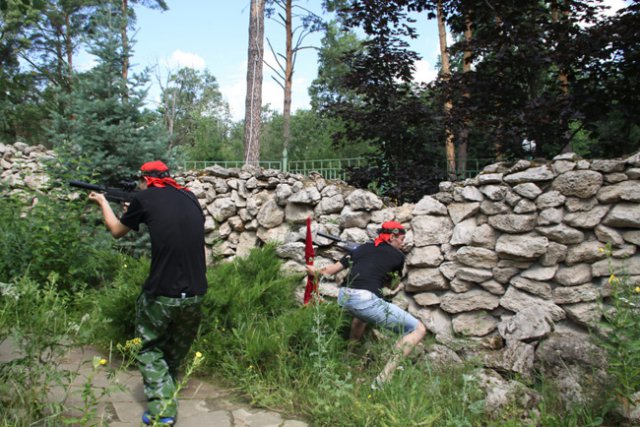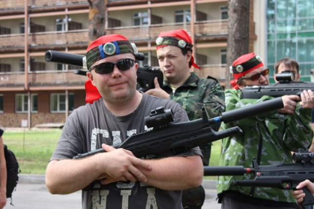 Тем не менее несмотря на безумную ночь в 10 утра все дружной командой вышли на тропу войны — играть в лазертаг.