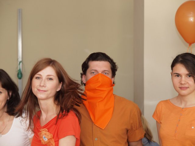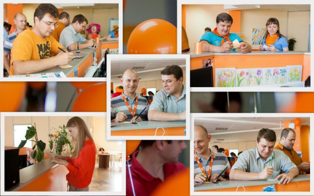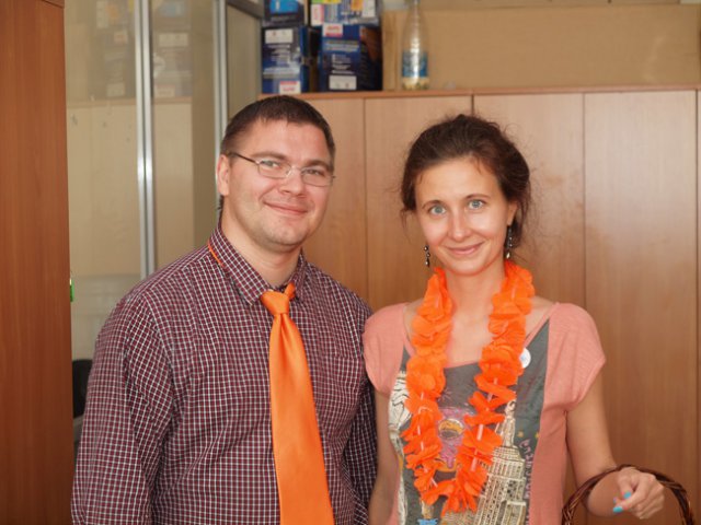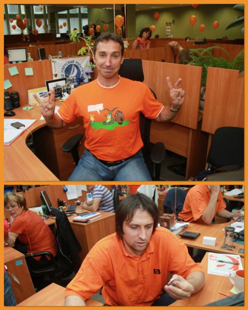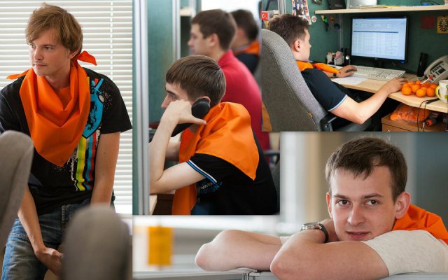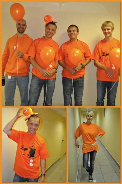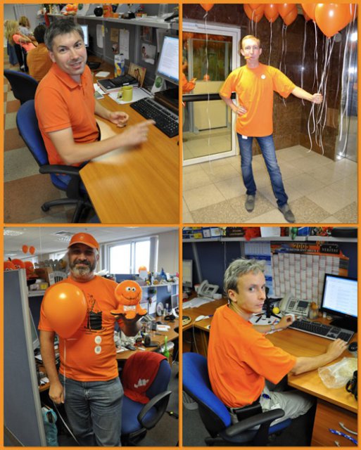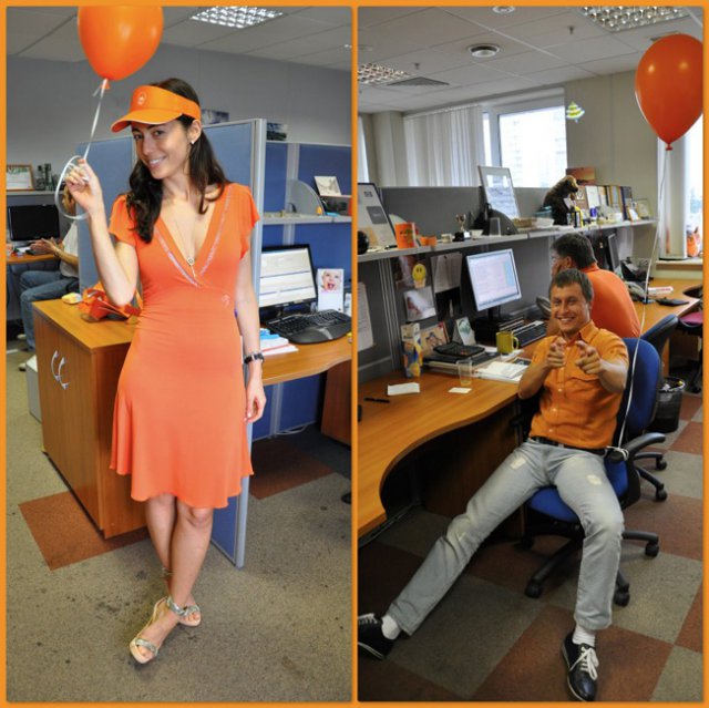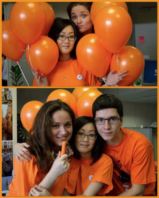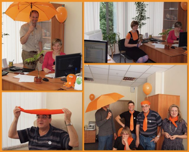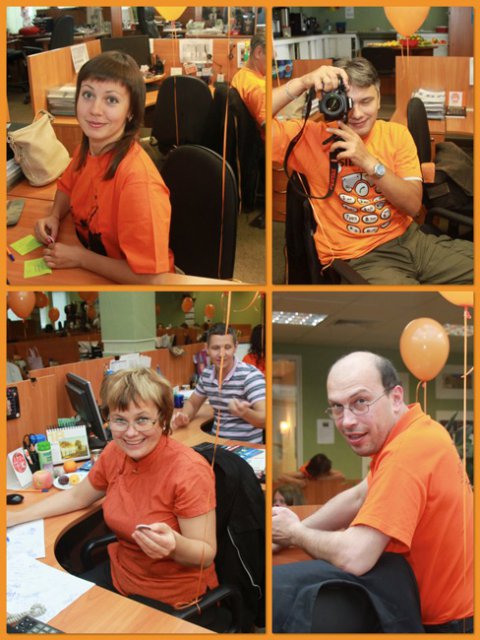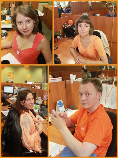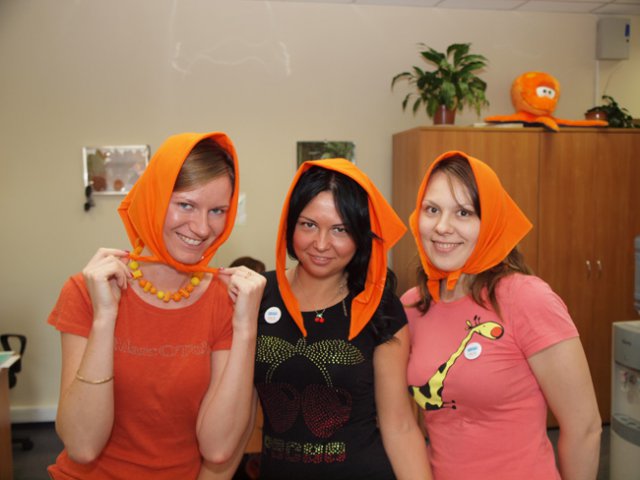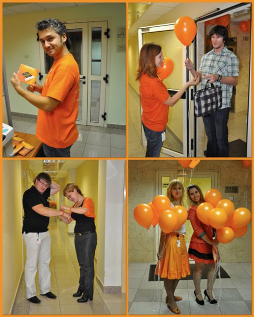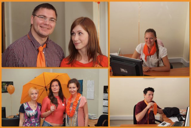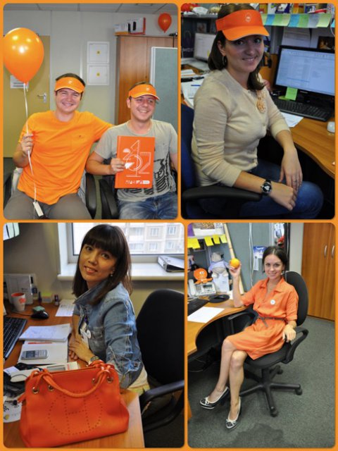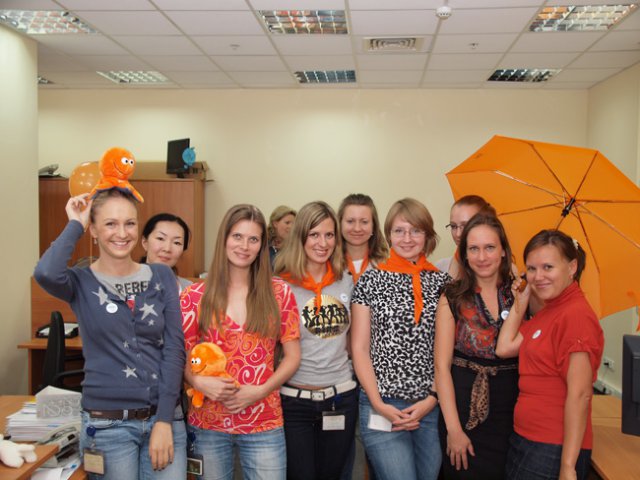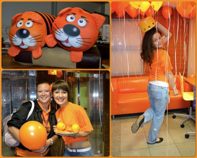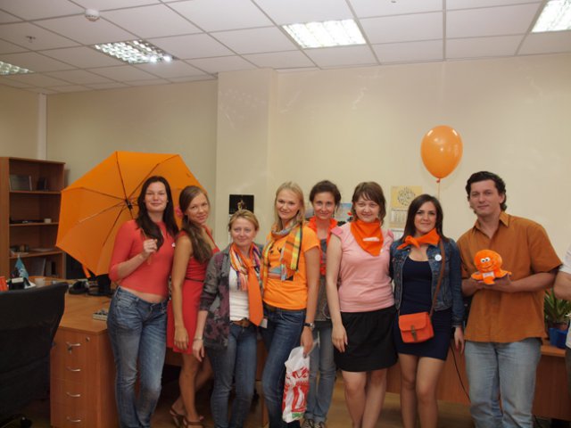 Это уже не первый «цветной» флэш-моб в OCS, в самом начале лета был «красный», потом – «Men in Black». Добавить немного «хулиганства» в рабочие будни – это так по-эсиэсовски! Тем более что сотрудники активно вносят свои идеи: например, изюминкой «Оранжевой пятницы» стали оранжево-полосатые коты, выставленные одним из сотрудников в качестве лота на оранжевой распродаже. Котов можно было получить в подарок, отправив самый убедительный запрос их хозяину. Претендентов нашлось множество, но устроителя акции до глубины души поразило письмо, написанное двумя петербургскими осьминогами в соавторстве с московским оранжевым диваном. Они объясняли, что очень нуждаются в обществе оранжевых котов, чтобы веселее было коротать выходные, когда в офисе становится так пусто и безлюдно… Их трогательная просьба была услышана.