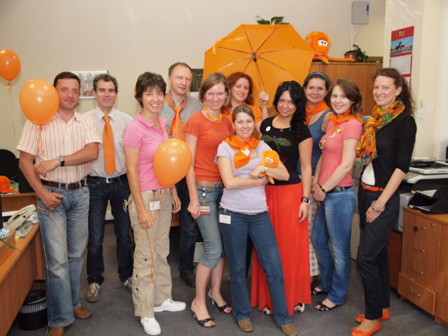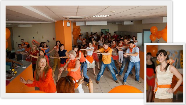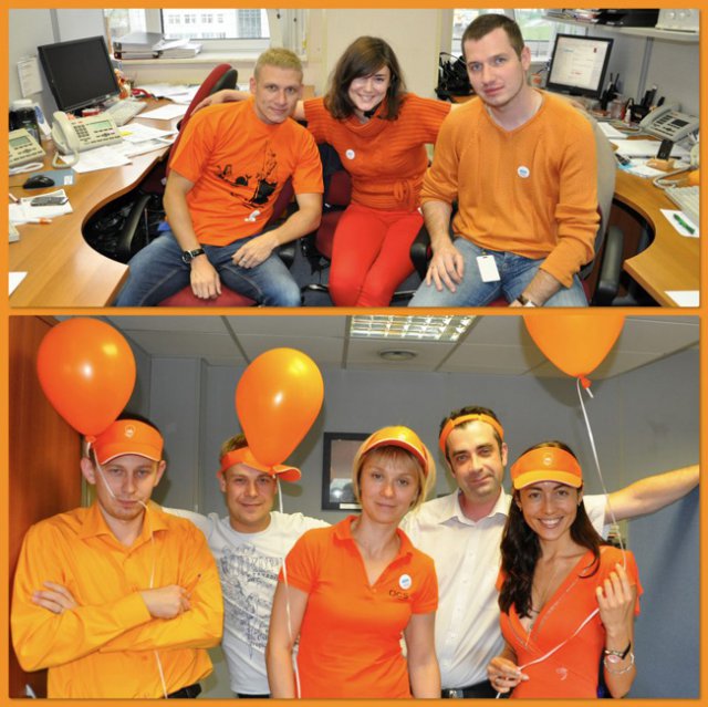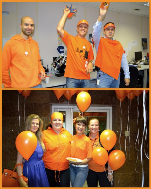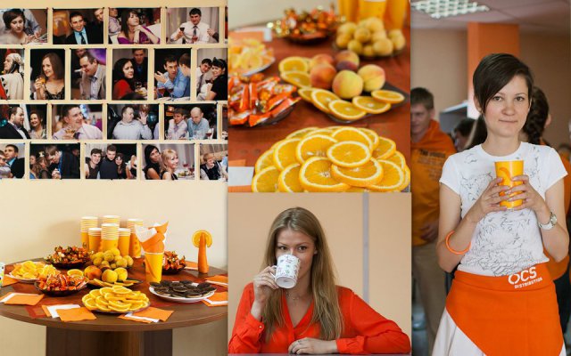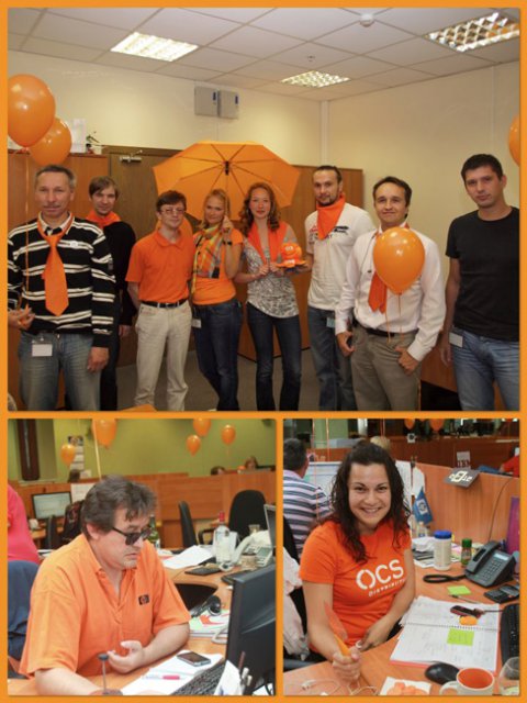 20 июля сразу несколько офисов компании OCS – в Москве, Петербурге, Екатеринбурге, Красноярске – заиграли всеми оттенками оранжевого: этот цвет на один день стал главным и в «дресс-коде» для сотрудников, и в праздничном декоре.