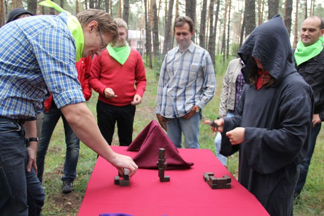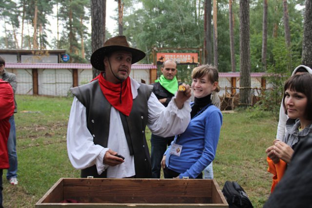 После деловой части партнеров ждал увлекательный и бодрый тимбилдинг. Хвойный лес на время превратился в прерии Дикого Запада, где партнеры, разбившись на команды, демонстрировали чудеса ловкости, сообразительности, выдумки, взаимопонимания и стремления к победе. В итоге, в выигрыше остались все, даже проигравшие, а победители получили еще и приятные призы от вендоров и значки "Лучшие среди равных".
