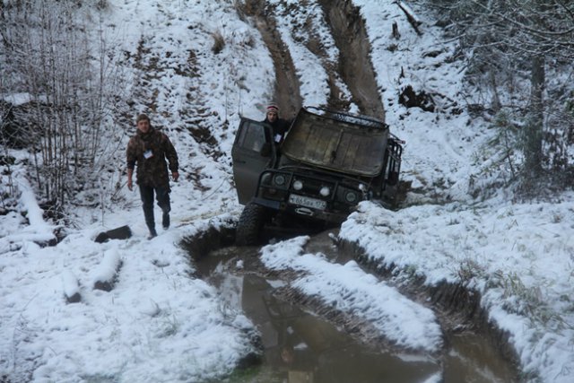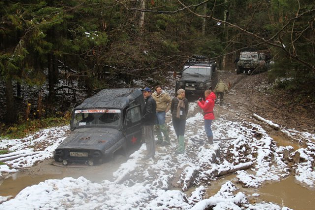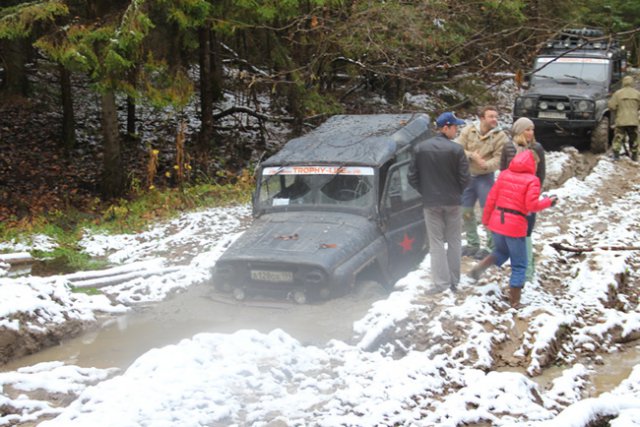 «Сегодня трасса даже для нас очень сложная», - говорили инструктора. Всего в trophy-рейд отправились 12 российских УАЗов, которые разъезжали по лесному массиву в поисках контрольных точек. Следует отметить, что на их долю выпали действительно суровые испытания, так как только 2 машины из дюжины смогли самостоятельно добраться до финиша.
