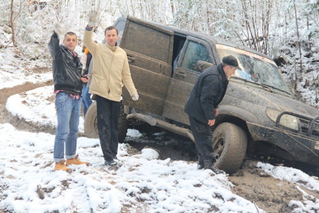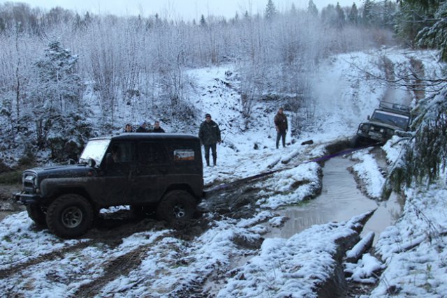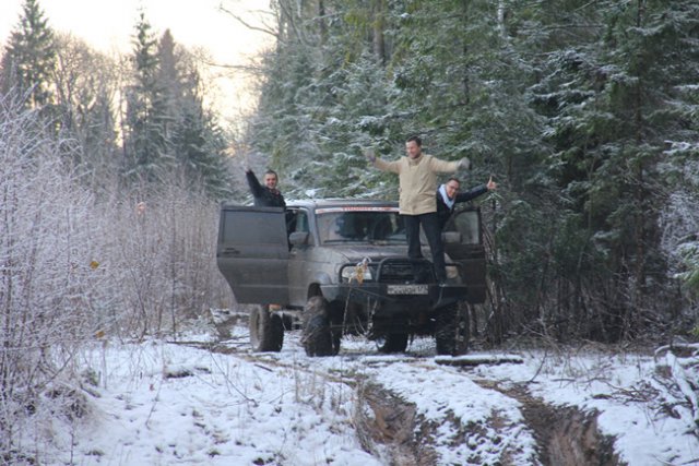 После обстоятельной деловой части программы партнеры окунулись в серьезный джиппинг. Выпавший первый снег превратил лесные дороги парка в Яхроме в сплошную полосу препятствий и абсолютное бездорожье.