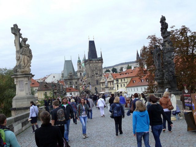 Прошлись по одному из старейших в Европе Карлову Мосту с множеством скульптур, который в настоящее время является любимым местом туристов, уличных артистов и художников, культовым местом, где загадывается и исполняется невероятное количество желаний ежедневно.