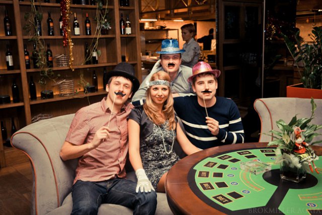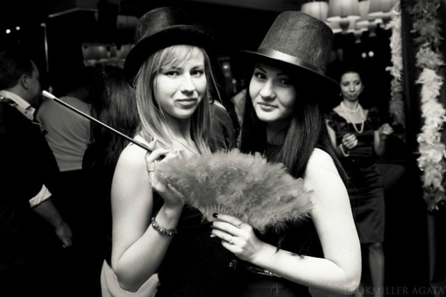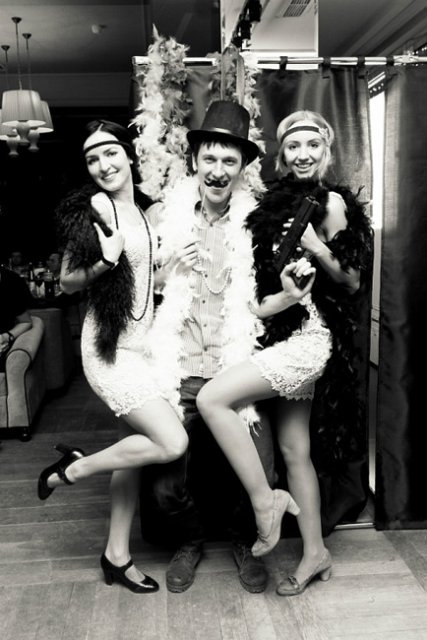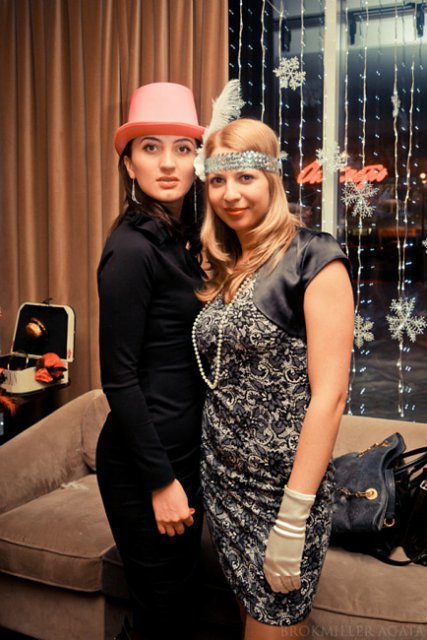 Неотъемлемыми атрибутами дамских нарядов стали жемчужные бусы, повязки на голове, расшитые бисером или стразами, украшения из перьев экзотических птиц, боа и маленькие шляпки, а джентльмены дополнили свой образ широкими подтяжками и тростью. Праздничная программа включала угощения, забавные конкурсы, любимую музыку и танцы до упаду.