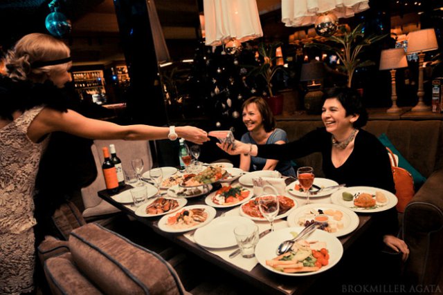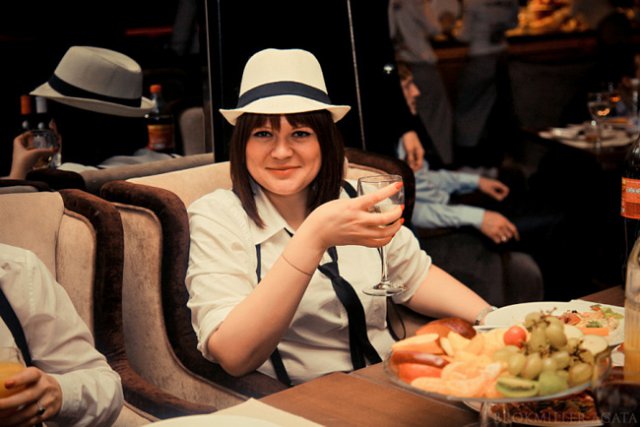 Вечер в стиле Америки 20-30х гг. заставил гостей перенестись в легендарную эпоху расцвета кинематографии и почувствовать неповторимую атмосферу того времени. Стены ресторана украшали портреты известных американских актёров, из динамиков доносились любимые ретро-шлягеры, а на танцполе главенствовало нестареющее танго.