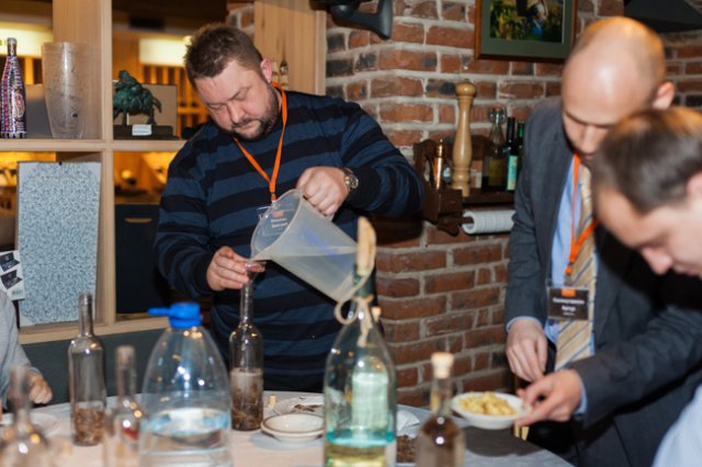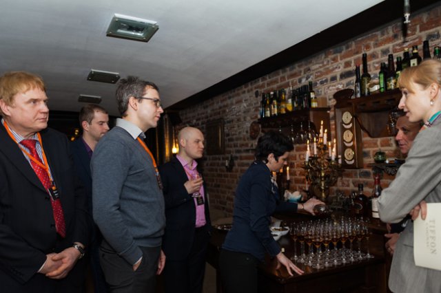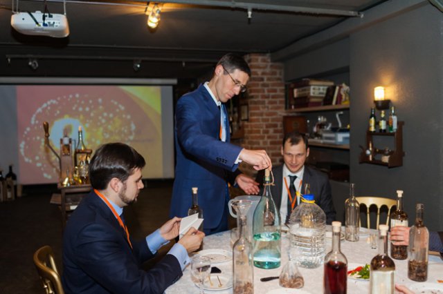 Во второй части встречи бразды правления перешли к генеральному директору винного погреба La Grande Cave Евгению Тростенцову. Он провел для партнеров увлекательный мастер-класс по изготовлению русской настойки по старинному рецепту, а также экскурсию по винному погребу, на которой была представлена эксклюзивная коллекция алкоголя.