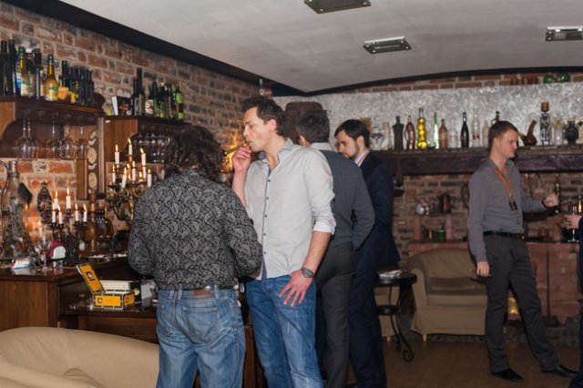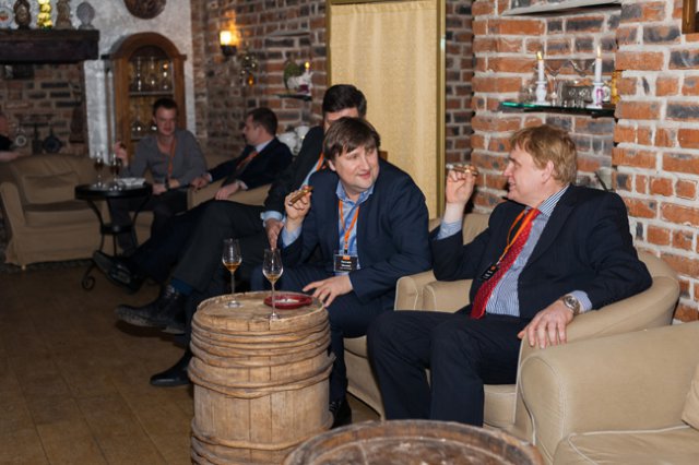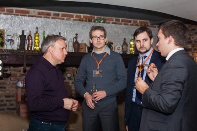 Участники продолжили неформальное общение в Каминном зале, где был предложен дижестив и проведен сигарный практикум.