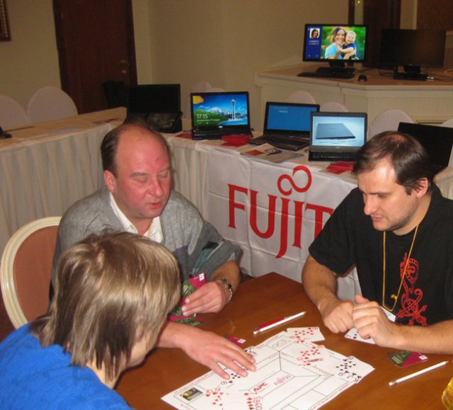 Представитель FUJITSU в Приволжском федеральном округе Александр Зайцев: "Мероприятие отличается особой атмосферой. Наверное потому, что на нем собирается много людей объединенных одной идеей –игрой. Турнир это хорошая возможность встретить старых знакомых и познакомится с новыми, в том числе это и удачный повод продемонстрировать последние достижения нашей компании для большого количества участников. Турнир позволяет завести новые партнерские отношения и обсудить давно сформировавшиеся. Турнир по преферансу "поПУЛЯрные технологии" это яркое событие в Поволжском ИТ-сообществе никогда не остающееся незамеченным."
