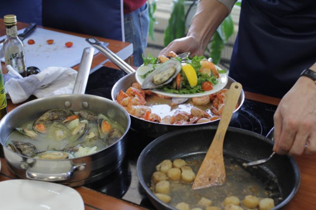 Гости активно включились в процесс приготовления и даже делились собственными наблюдениями и опытом. Все участники мастер-класса смогли не только узнать у повара все тонкости и нюансы приготовления итальянских блюд, но и продегустировать их.