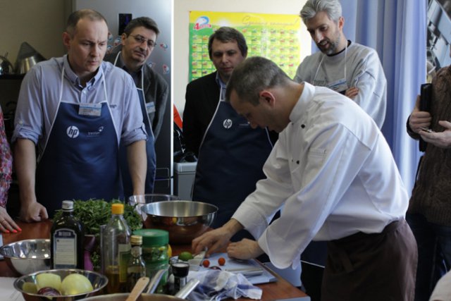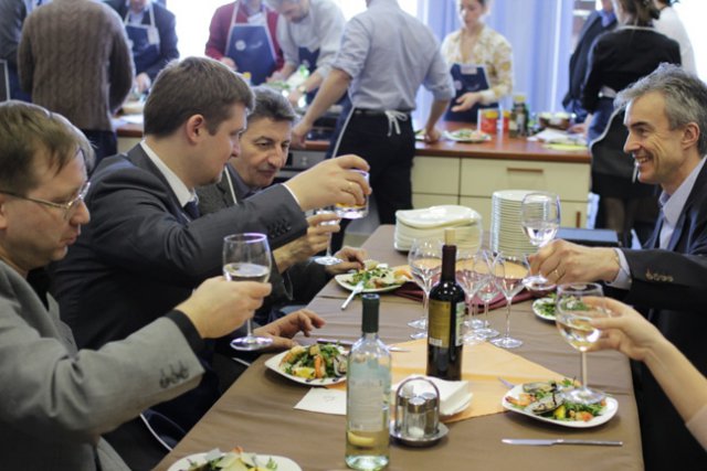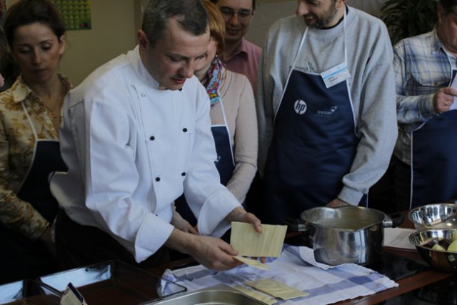 Встреча завершилась кулинарным мастер-классом «Рецепты итальянской кухни». Гости получили возможность приобщиться к вкусному и прекрасному и постичь азы кулинарного искусства в приятной компании коллег под руководством профессионального повара.