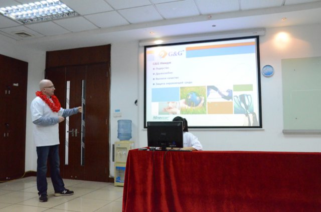 В Чжухае партнеры посетили завод по производству картриджей G&G, ознакомились со всеми этапами изготовления картриджей, а также в ходе конференции обсудили вопросы бизнеса и перспективы работы. По итогам работы в 2012-2013 гг. компания РОСКО была награждена компанией Ninestar за высокие достижения в продвижении торговой марки G&G на российском рынке.