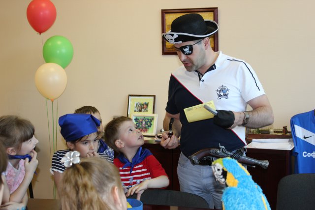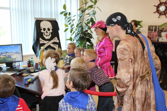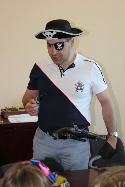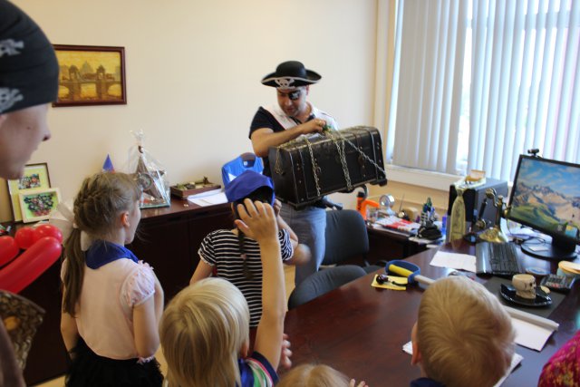 Вместе с настоящими пиратами они должны были пройти ряд заданий и конкурсов, которые привели их в итоге к самому настоящему кладу, который охранял Главный Пират (президент компании). Также был организован мастер-класс по поделке сувениров из цветного песка.