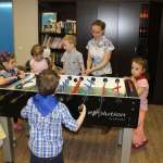 Гости постарше тоже не скучали на празднике! Они могли поиграть в кикер, Xbox, поучаствовать в конкурсе с машинками на р/у, поставить любопытные опыты с электричеством и не только...