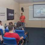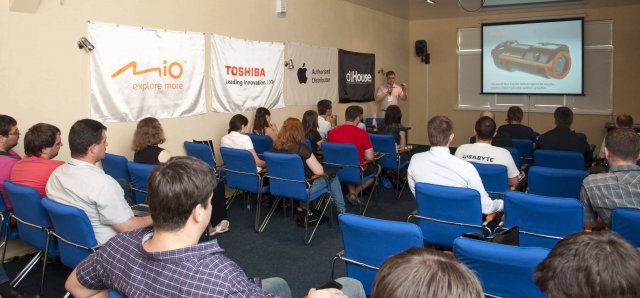 Алексей Степанов, руководитель отдела продаж MIO, переключил внимание слушателей с ноутбуков на автомобильные гаджеты. «Дорога глазами видеорегистратора» — так звучала тема его выступления.