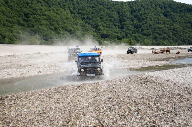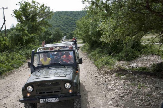 «Ударим автопробегом по бездорожью!» — так была анонсирована развлекательная часть роад-шоу. Экстремальная и увлекательная поездка на джипах ждала всех участников после обеда. Положительный заряд и бурю эмоций вызвал джипинг по экскурсионному маршруту Краснодарского края.