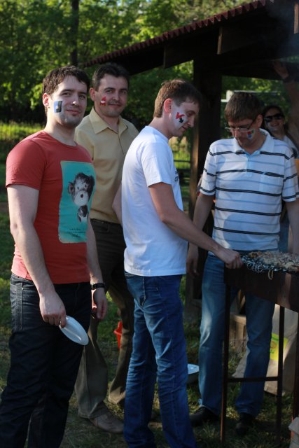 В этот день у каждого был шанс добавить красок в свои трудовые будни. Праздник начался ещё в офисе. Заканчивая последние рабочие дела, IT-маны с воодушевлением принялись рисовать на лицах своих коллег логотипы разработчиков. Многим удалось попробовать себя в роли художника, ведь они никогда не боялись трудностей и новых задач. Даже наоборот, страсть ко всему неизведанному и фанатичное отношение к делу — вот, что характеризует всех сотрудников и объединяет их с партнерами и вендорами! «Забрендироваться» хотели все, причём каждый желал добавить ещё больше выразительности и индивидуальности в свой образ! Один решил нарисовать на своём лице большой аэростат Corel и даже захватил с собой в качестве реквизита яркие воздушные шары, другой предпочёл минималистичный логотип Kerio, изображение Symantec оказалось даже на ногтях! Фанат 1С не только нарисовал яркий логотип на щеке, но и надел фирменную футболку, и не выпускал из рук жёлтый флаг. Где еще увидишь такую интересную картину? Kaspersky и Eset дружно стоят рядом. Adobe, Аскон, Камин и Софтбаланс играют в одной волейбольной команде. Microsoft и Kaspersky жарят шашлыки...