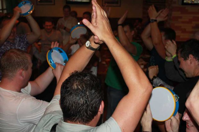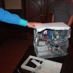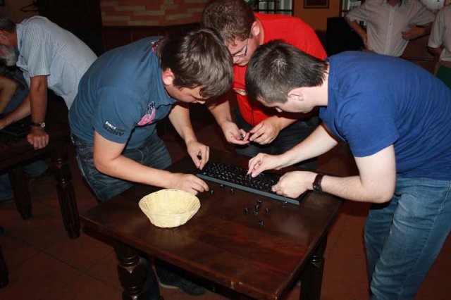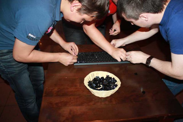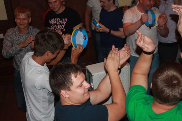 Перейдя к практике, гости проверили свою память и собрали на скорость клавиатуру. Для этого процесса потребовалось 9 рук, 3 головы, 6 мин. и 43 сек. Кульминацией праздника стал шаманский танец с бубнами вокруг культового сервера Sun (на заметку: он после этого работал!) и мастер-класс о видах и способах этого замечательного действа. Так, по версии одного из участников, танец с бубнами исполняется старшим системным администратором вокруг младшего, в «бубен» которого и вкладывается ключевая информация. Многие из участников взяли версию на заметку.