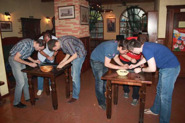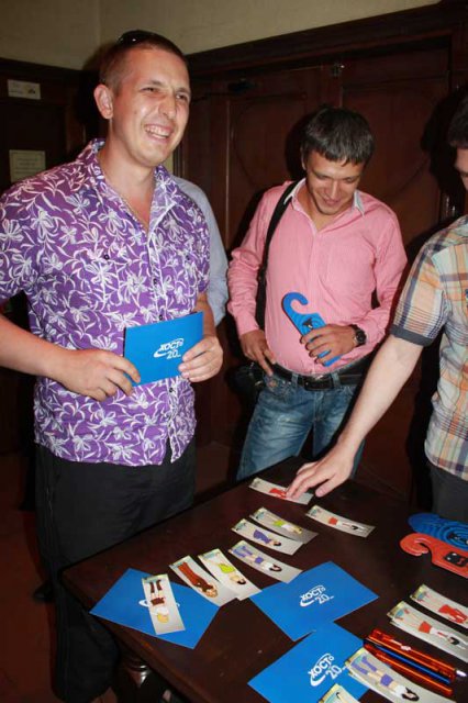 Если театр начинается с вешалки, то праздник для системных администраторов начался прямо с порога. Под девизом «Докажи, что ты сисадмин!» все гости должны были ответить на каверзные вопросы: «Что нужно сделать, если пользователь жалуется на неработающий принтер?», «Что означает выражение „курить маны“?», «Когда нужно танцевать „танец с бубнами“?», «Какой порт нужно открыть на фаерволе, чтобы почтовый сервер принимал почту?» и многие другие. Гости с ответами не затруднялись и с легкостью доказывали свою принадлежность к профессиональному ИТ-сообществу, за что заслуженно получали памятный сувенир.