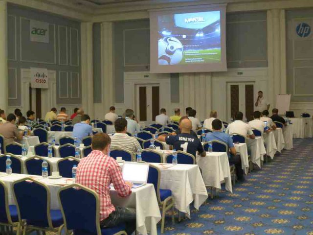 Несмотря на по-летнему теплое турецкое солнце и неповторимую атмосферу футбольного праздника, первый день поездки был посвящен пленарному заседанию. Открыл деловую часть старший вице-президент, генеральный менеджер «Марвел-Дистрибуции» Константин Шляхов с презентацией, посвященной итогам трех кварталов текущего года и планам развития компании. Отрадно, что несмотря на сложную ситуацию на ИТ-рынке, «Марвел-Дистрибуция» сохраняет положительную динамику продаж и с оптимизмом смотрит в будущее. Затем выступили представители вендоров-спонсоров — Acer, APC, Avaya, Cisco и HP — и рассказали о новинках продукции и программах поддержки партнеров.
