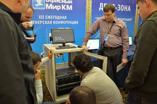 Что такое виртуализация серверов и рабочих мест и в чем ее преимущества? Какие решения эффективны при построении Центров обработки данных? Как спроектировать индивидуальную серверную систему? Квалифицированные ответы на эти и многие другие вопросы могли получить корпоративные клиенты «Офисного мира КМ». Компания ежегодно приглашает своих заказчиков, чтобы поделиться новостями из IT-сферы и обсудить актуальные темы, касающиеся оптимизации использования офисного оборудования. С докладами о последних тенденциях рынка выступили специалисты фирмы и представители лидирующих мировых производителей — Intel, Microsoft, HP, IBM, для которых «Офисный мир КМ» является ключевым партнером на Юге России.