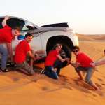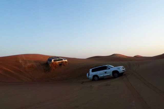 По праву одним из самых сильных впечатлений от поездки стала пустыня Руб-эль- Хали. Уровень адреналина участников сафари на джипах стремительно подскакивал от заносов на крутых склонах. Быстро скрывающееся за линией горизонта раскаленное солнце и бесконечное море дюн, теплый ветер, мягкий, быстро остывающий под ногами песок и сумасшедшие оттенки неба, которые ни один фотообъектив не способен передать.