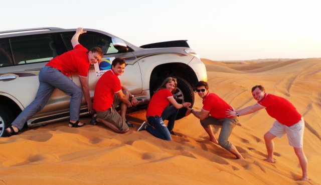 Следующий день по общему признанию прошел в WOW-режиме. Как выяснилось, у местных жителей непреодолимое желание быть «самыми». Именно в Дубае построено самое высокое здание в мире. Небоскреб Burj Khalifa устремлен ввысь на целых 828 метров. Для его возведения был даже изобретен особый вид бетона с добавлением льда, который выдерживает температуру до +50 С. Со смотровой площадки на высоте 452 метров перед командой Novardis открылся головокружительный вид на город небоскребов, бескрайнюю пустыню и завораживающее своей синевой Аравийское море.
